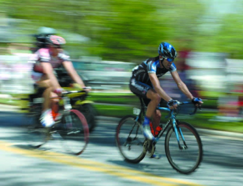 New Zealander Glen Alan Chadwick, right, of team Navigators Insurance speeds by the Blue Willow Inn in Social Circle on Saturday afternoon during the Tour de Georgia Stage 6 sprint leg. Chadwick and two other leaders reached the sprint a full six minutes ahead of the rest of the pack. Stage 6 of North America’s highest rated cycling race continued into Newton and then Rockdale counties before concluding in Stone Mountain.